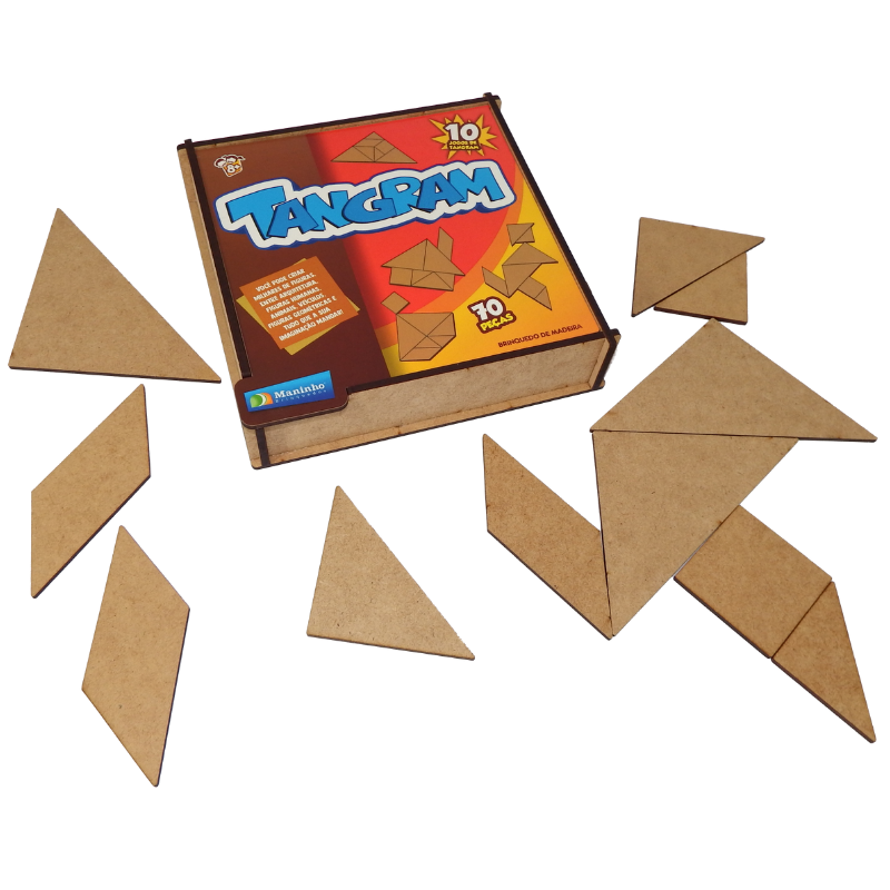 O Tangram é um tradicional quebra-cabeça geométrico de origem chinesa que atravessa gerações estimulando a imaginação e o pensamento lógico. Formado por 70 peças, o desafio é utilizar todas elas, sem sobreposição, para criar figuras, formas e composições variadas.